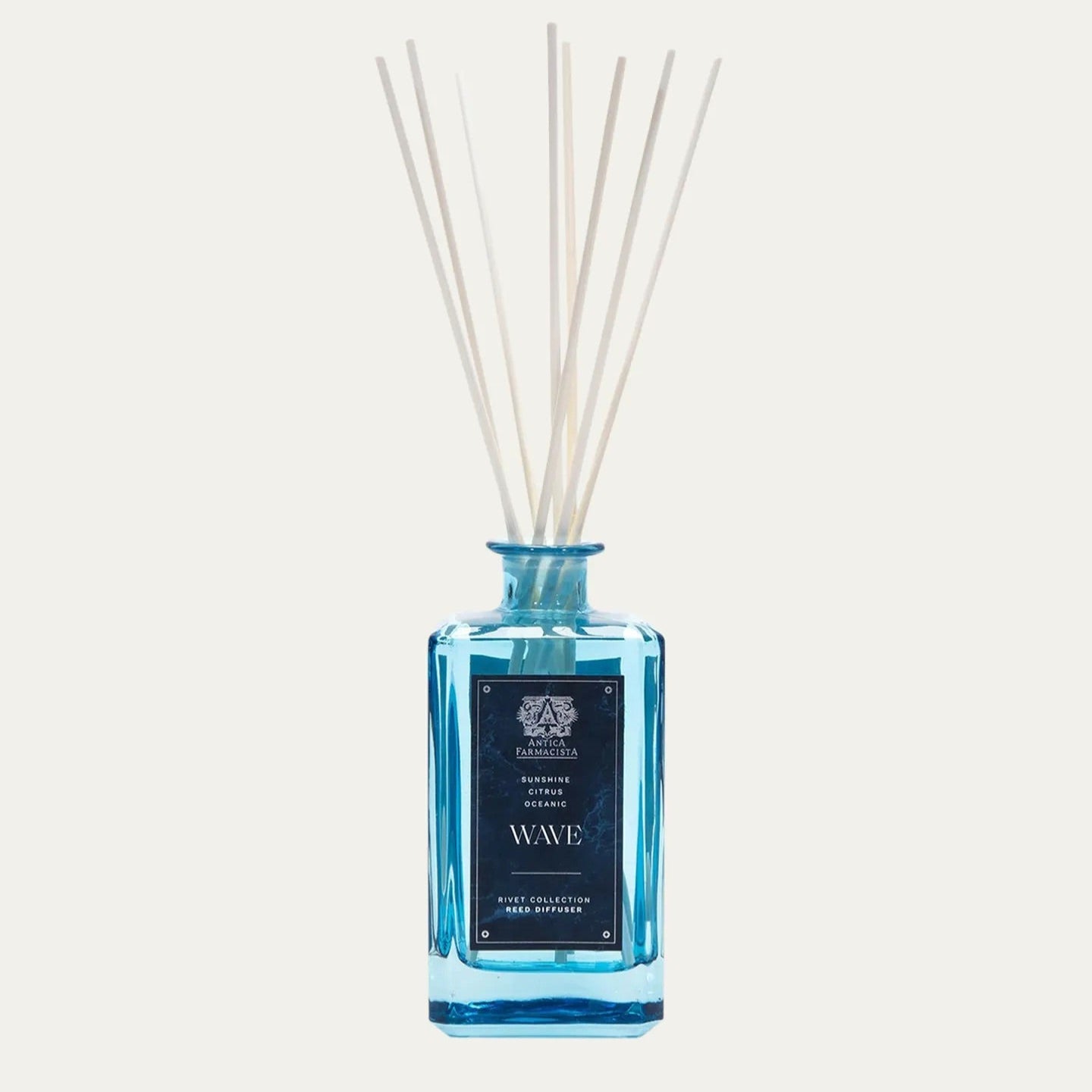 The Product: Introducing the Rivet Collection, inspired by the connective power of fragrance. Galvanized by the rivets that move us through land, air and sea, we deliver a modern collection, connecting design and destination. Utilizing apothecary inspired bottles filled with exquisite fragrance, the scent permeates the air via our signature reeds which are inserted into the bottle. The reeds absorb the fragrance and subtly distribute it throughout the air, providing lasting, beautiful scent. Flip reeds every day for more intense scent or once a week for more subtle fragrance.